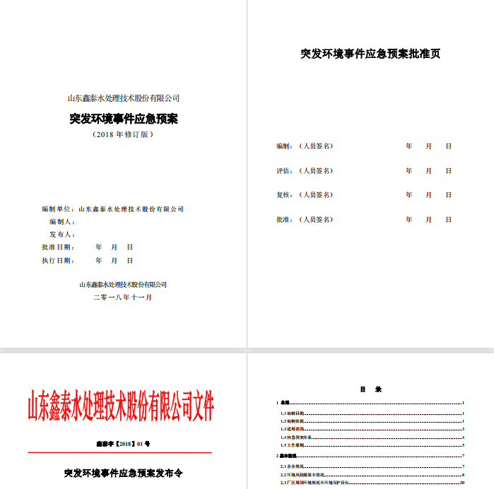 山東鑫泰水處理技術股份有限公司 突發(fā)環(huán)境事件應急預案